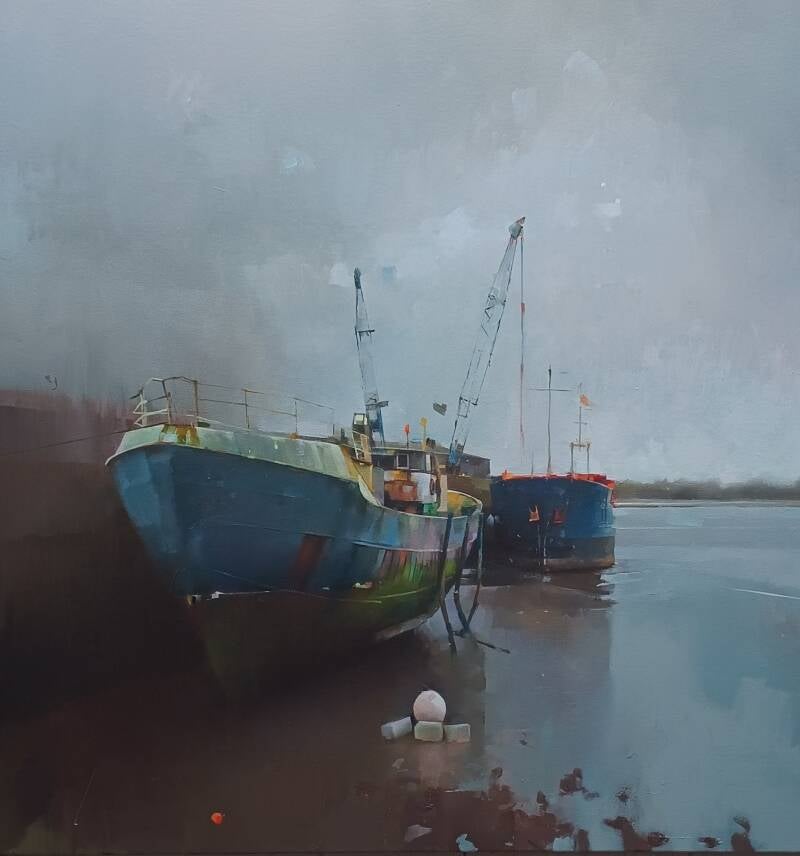 Estuary. Oil on canvas, 62 x 86cm. Available through the Mall Galleries London with the Royal society of marine artists.